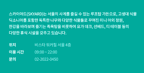 비스타에 왔다면 꼭 가보라고 추천하고 싶은 곳이다. 루프탑 가든으로 정원이 있는 공간이고 무엇보다 족욕이 가능하다. 4층에 위치하고 체크 인 시간보다 일찍 왔어도 사용할 수 있으니 체크 인 시간보다 일찍왔다면 한 번 들리는 것을 추천한다.
