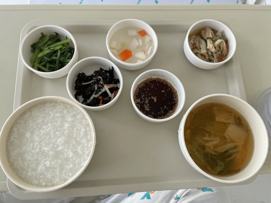 3일차가 되어서야 그디어 죽을 먹게 되었다. 그렇다고 맛있지는 않았다. 이 아침을 마지막으로 퇴원했다. 원래는 2박3일정도로 예상하고 입원했는데 3박 4일을 입원했고, 마지막까지 열이 내리지 않아 퇴원 못할 뻔했다. 실제로 체온이 높다는 것을 어필한 후에야 겨우 퇴원을 할 수 있었다. 일요일이라서 가퇴원(대충 총 금액 계산)만 하고 다시 소독으로 방문했을 때 냈던 금액 취소하고 제대로 된 금액을 다시 지불했다.