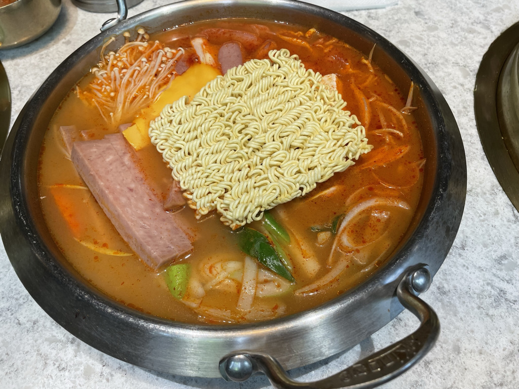 사실 부대찌개류는 맛이 없을 수가 어렵지... 맛있는 햄 넣고 끓이는데 ^^ 섭섭했던 점은 면을 올려서 주신다는 것이다. 사실 면은 물 끓고 올려야하잖아요~~ 증말 섭섭해~