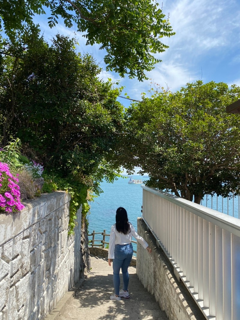 좁은 담 사이로 바다가 보이는 게 절경이다.