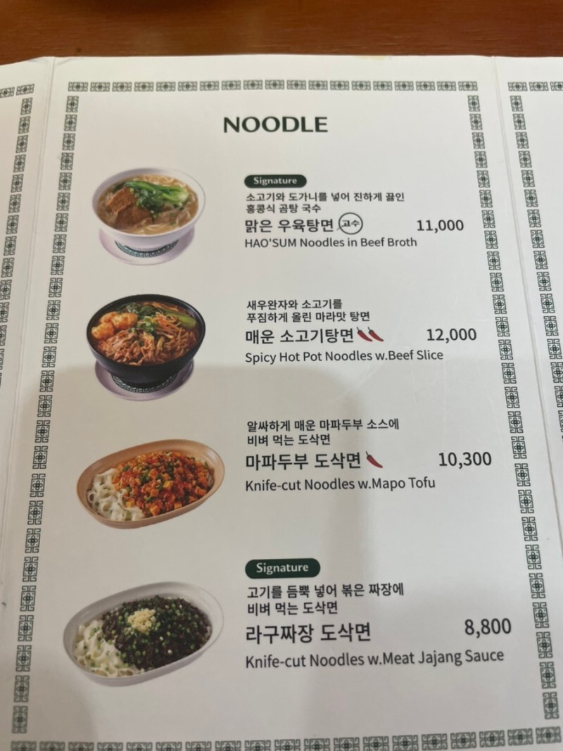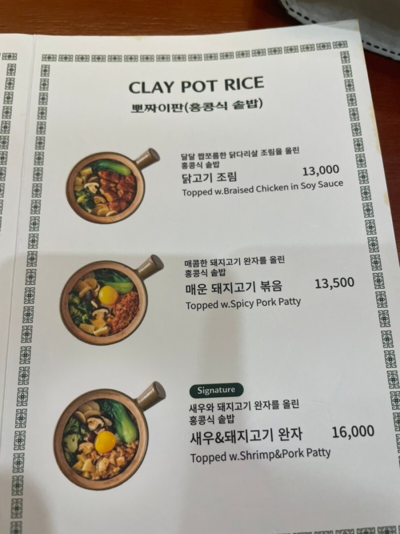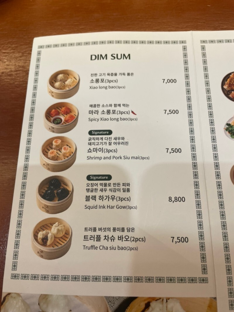 딤섬, 튀김류, 누들, 솥밥로 나누어져있다.
