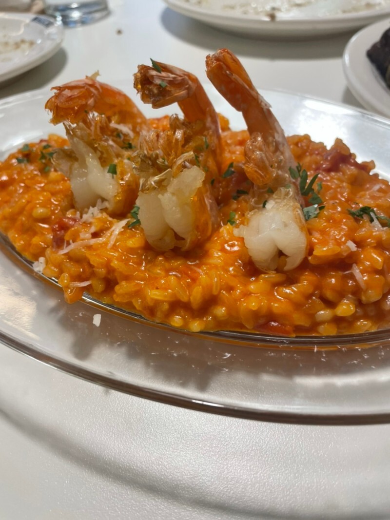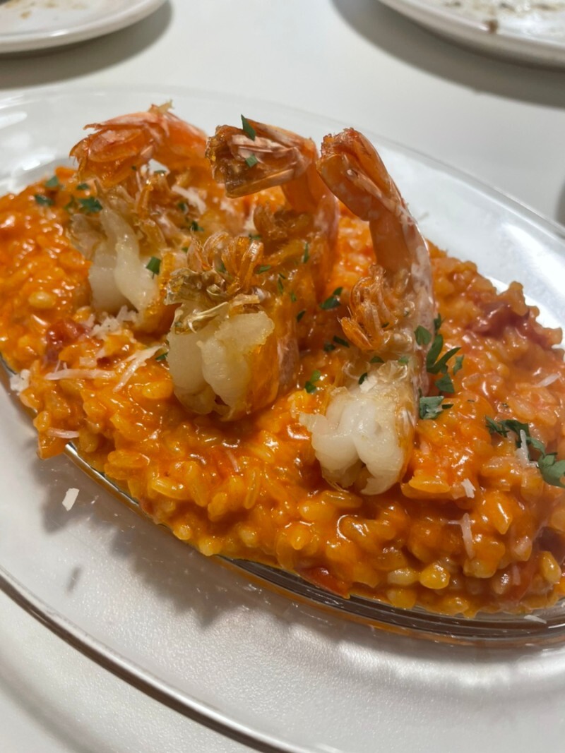 버터 구이된 쉬림프가 세마리 올려져있다.